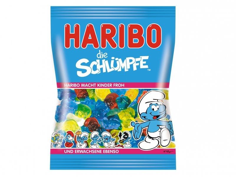 Мармелад Харибо Smurfs – персональная компания вкуснейших сказочных синих гномиков. Жевательный мармелад в форме веселых смурфиков Haribo обладает оригинальным, пикантным вкусом с тонкой, освежающей кислинкой с цветовой гаммой точно повторяющей мультяшных героев: белыми, красными шапочками, а также туловищами красивого голубого цвета. Желейный мармелад Haribo, является самым популярным классическим десертом, приготовленным по оригинальному немецкому рецепту с характерными вкусами в удобном полиэтиленовом пакете.