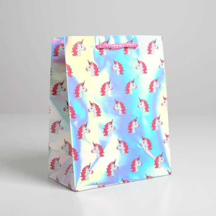 Пакет подарочный голографический «Единорожки», 18 × 23 × 10 см
