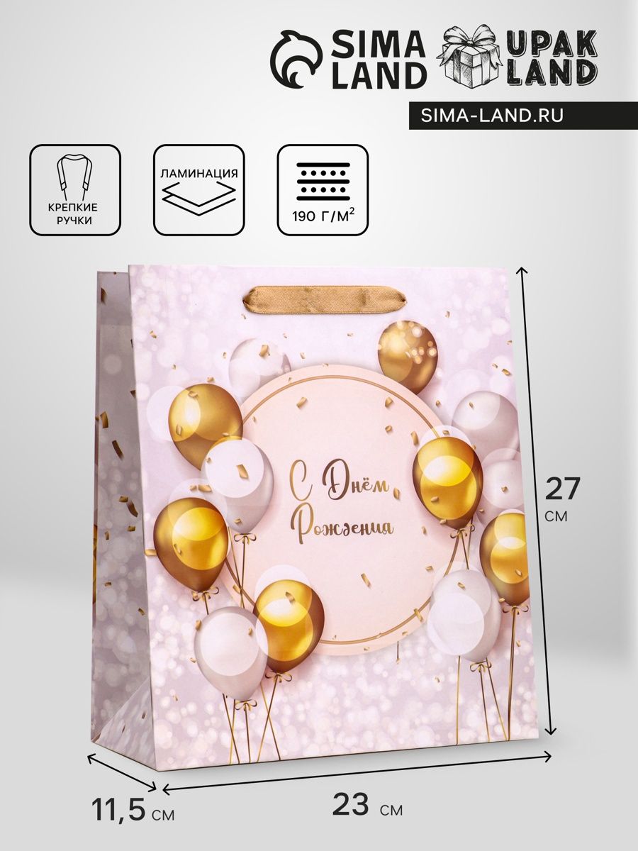 Пакет подарочный вертикальный «С ДР», ML 23 × 27 × 11.5 см