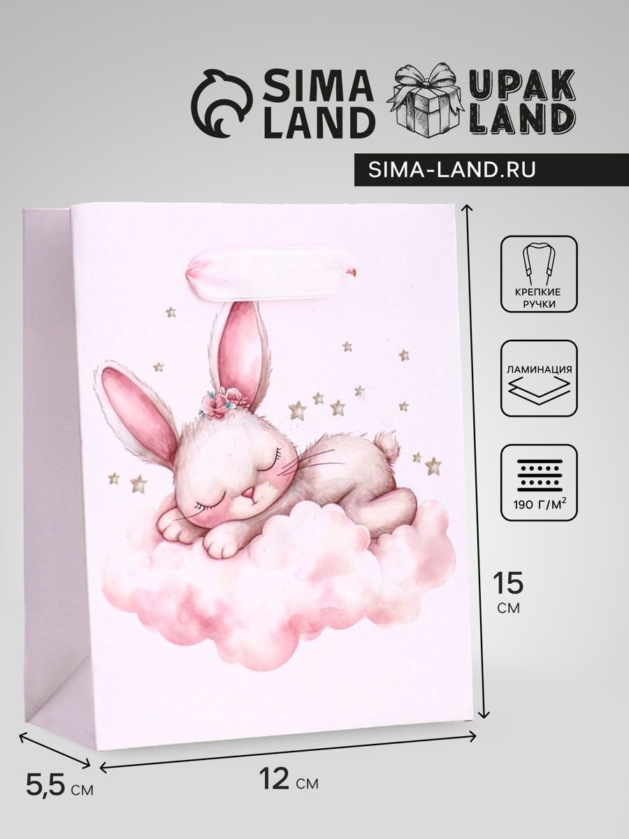 Пакет подарочный вертикальный «Зайка», S 12 × 15 × 5,5 см