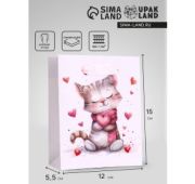 Пакет подарочный вертикальный «Сердечный котик», S 12 × 15 × 5,5 см